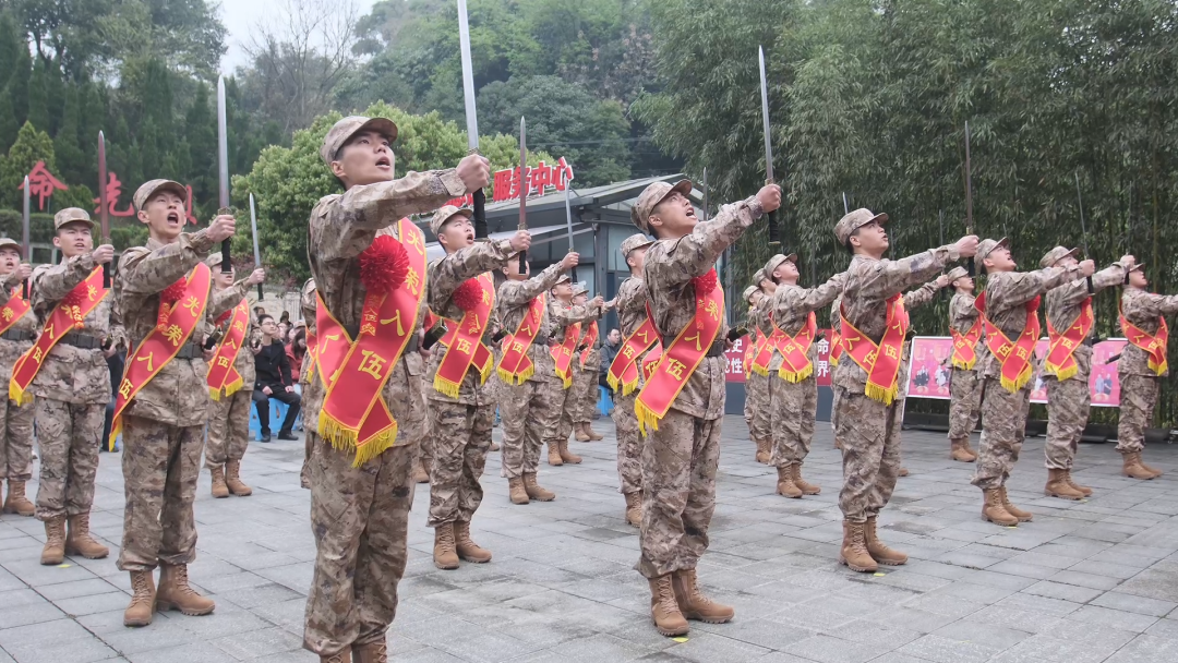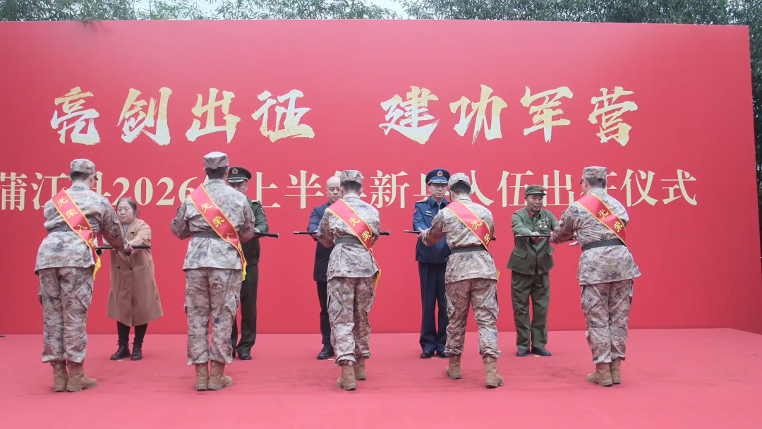 在四川蒲江县新兵出征仪式上,新兵们获赠象征使命与荣光的“从戎剑”。在家乡父老的深情注视下,全体新兵庄严亮剑,许下用青春和热血守护家国安宁的庄严承诺。
