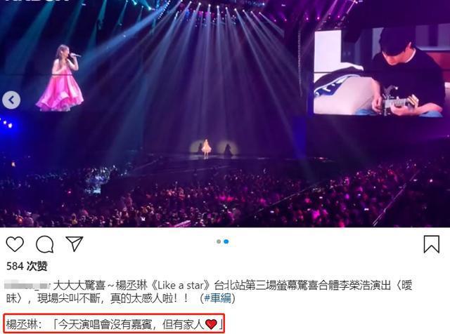 在演唱会台北站的第三场中有意外惊喜,杨丞琳在演唱会中和观众分享:“今天的演唱会没有嘉宾,只有家人。”