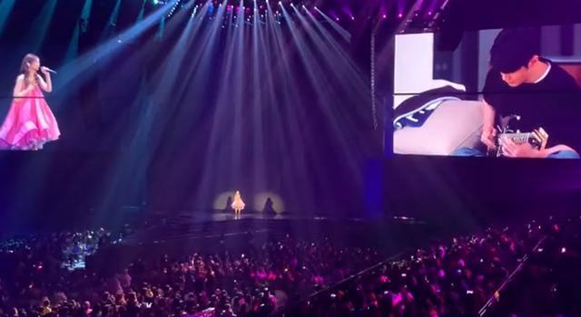 在演唱会中,杨丞琳与将近8个月没有见面的老公李荣浩罕见合体,他们隔空对唱了杨丞琳的代表作《暧昧》,观众们在现场尖叫声不断。