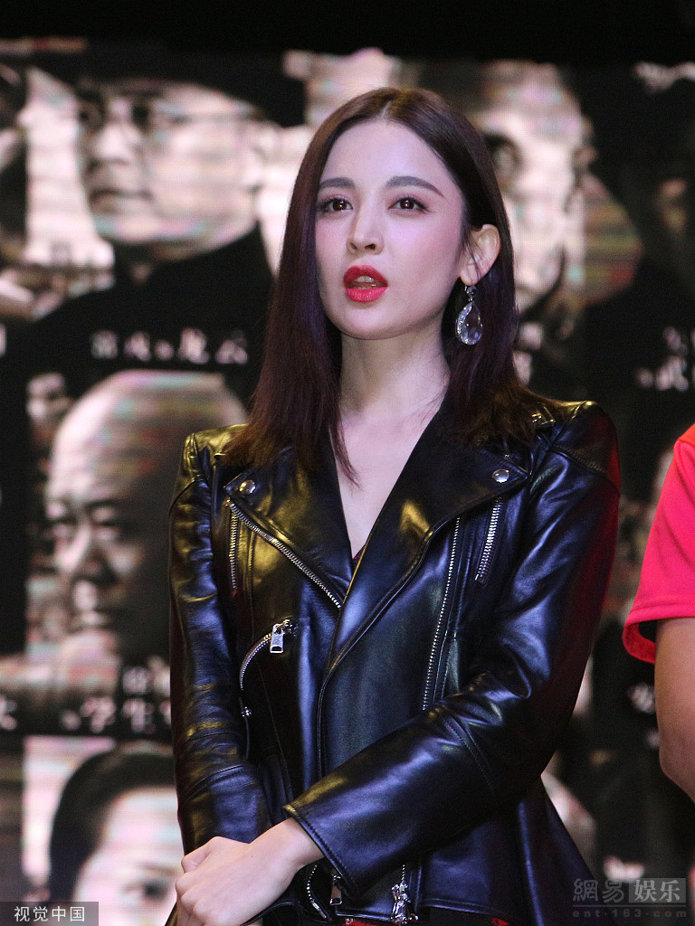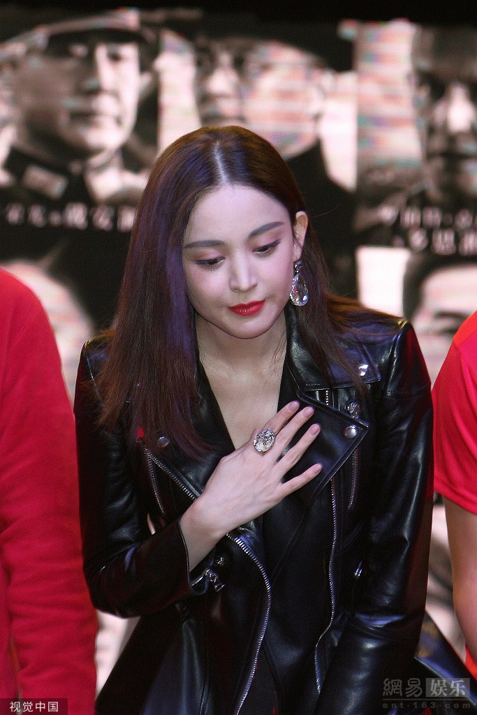 娜扎长发红唇浅笑迷人 穿皮衣搭短裙秀美腿
