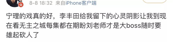 本剧中,宁理一改《无证之罪》中的冷血杀手形象,扮演了一位心地善良的中学老师,与刘奕君扮演的自私商人因逃生多次发生碰撞,两位老戏骨互飙演技看点十足。不过,随着剧集的播出,刘正毅正直教师背后的神秘身份逐渐浮出水面。角色前后的巨大反差,把大把观众都惊艳到在线“自来水”式安利了。