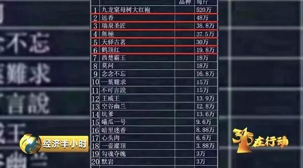 本文图片均来自央视财经《经济半小时》栏目今年五月,记者在这些茶叶经销店看到,几万元甚至十万元一斤的茶叶比比皆是,最高端的茶叶卖到10万元一斤。其中一种名为“牛肉”的顶级岩茶现在越来越抢手了。