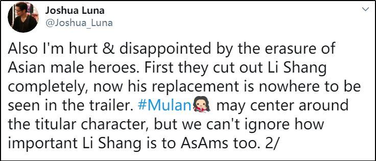 而同性恋支持者,甚至做了这么一番“分析”:其实李将军是同性恋,他没发现花木兰是女性时就爱上“他”了。片方是拿“反性骚扰”打幌子,删掉李将军,是为了阻止男性相爱的故事出现。