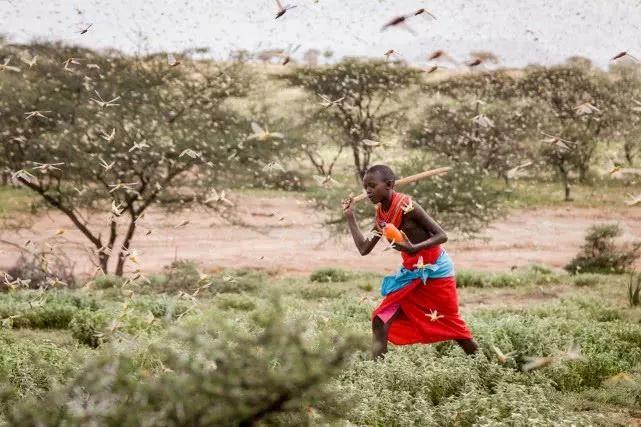 蝗虫过境只能用“惨烈”二字形容: 1平方公里的蝗群一天就能吃掉3.5万人的口粮,极大地威胁着当地居民的生存。