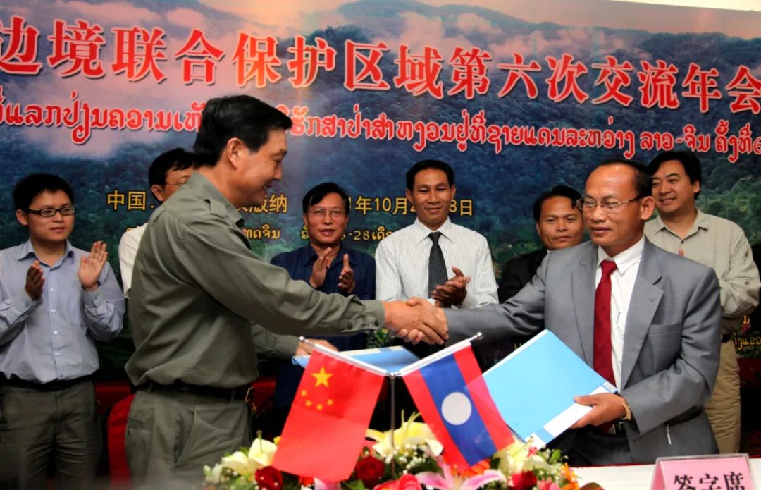 2010年,中老边境一线又新增3片联合保护区域。一条南起老挝南塔省南木哈国家级自然保护区,北至中国西双版纳勐腊子保护区,长约220公里,面积约300万亩的跨境联合保护区域形成。目前,中老跨境联合保护已上升为两国政府层面的合作,为边境地区的亚洲象及生物多样性保护筑牢了生态安全屏障,开创了中国生态保护的“跨境”先河。