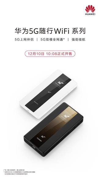 12月10日上午10:08,华为5G随行WiFi系列已于华为商城等各大授权电商同步首销,其中华为5G随行WiFi售价1699元,华为5G随行WiFi Pro售价2199元,如果消费者在11月25日18:08至12月10日10:00间参与线上预约,还可享受100元优惠。