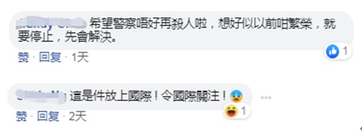 而在《苹果日报》相关报道的评论区,有暴徒支持者信以为真大呼,“希望警察不要再杀人啦”;还有人称要让“这事件令国际关注”↓