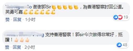 对此,有香港网民留言为郭嘉铨点赞,并感谢他为香港警察讨回公道↓