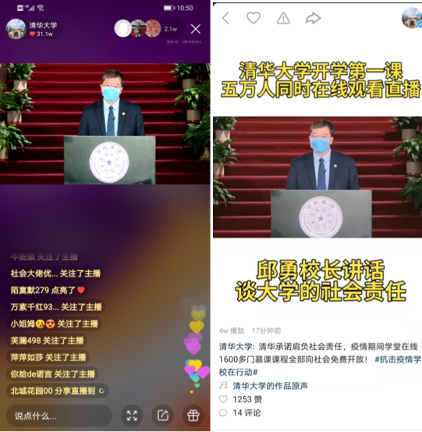 清华大学开学第一课快手直播吸引10万人在线观看
