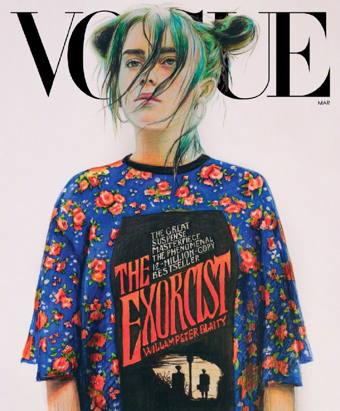 依旧绿油油,碧梨Billie Eilish登上《VOGUE》最新一期封面。