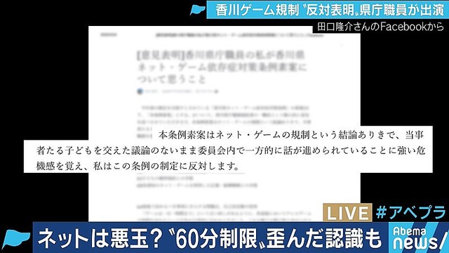 香川县政府健康福利部现役职员田口隆介认为,游戏依赖症的产生因素有很多,不一定是单方面的,很有可能来自于学生的学校和家庭,而政府一刀切的做法会引起青少年的反抗。“不过就目前来看,对于该议案持赞成态度的议员更多。”田口隆介说。