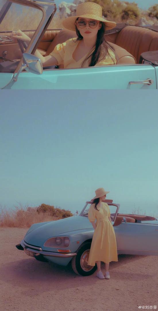 刘亦菲也穿过同样的,搭配草帽和小白鞋则是另一种感觉,有种富贵小姐出门郊游的感觉。