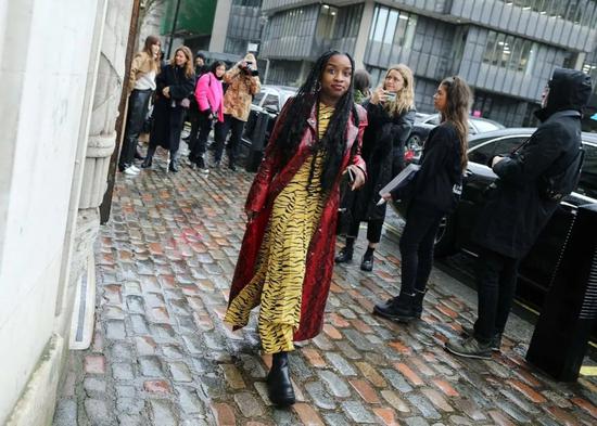 想要特别一点?试试带动物纹的小黄裙呀!搭配一件皮衣和短靴,温柔色也能酷起来!