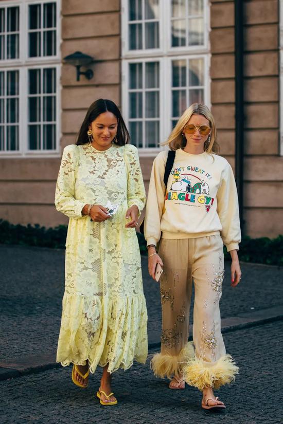 蕾丝和淡黄色放在一起尽是春天的浪漫了,就是这种衣服对布料和身材的考验都是很大的,挑选的时候还是要谨慎些。