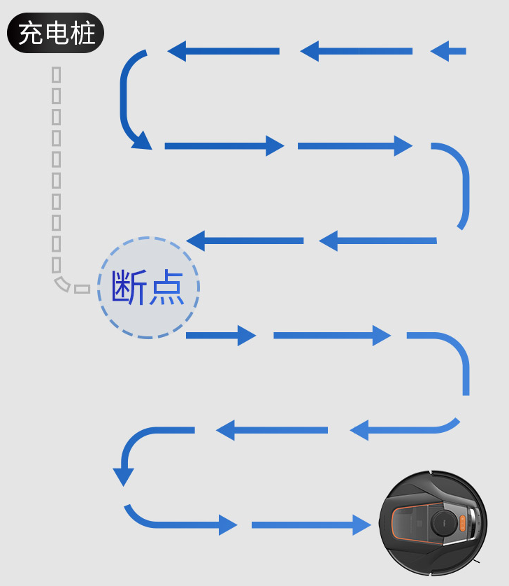 在续航方面,双电池配置可续航约200分钟,可清扫面积达255㎡,笔者家里100㎡的房间,打扫两遍以后还有电,低电量时它还可以自动回到电源充电处进行回充,这时会发生位置移动,其实也不用担心,海尔P70扫地机会返回断点处继续清扫。