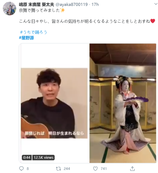 还有网友伴着星野源的视频跳了段日本传统舞蹈↓