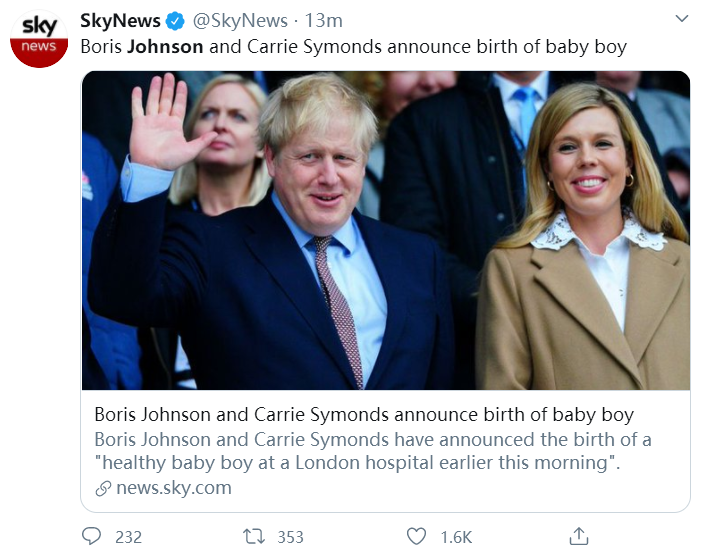 喜讯!英国首相约翰逊未婚妻诞下一男婴,“母子平安”