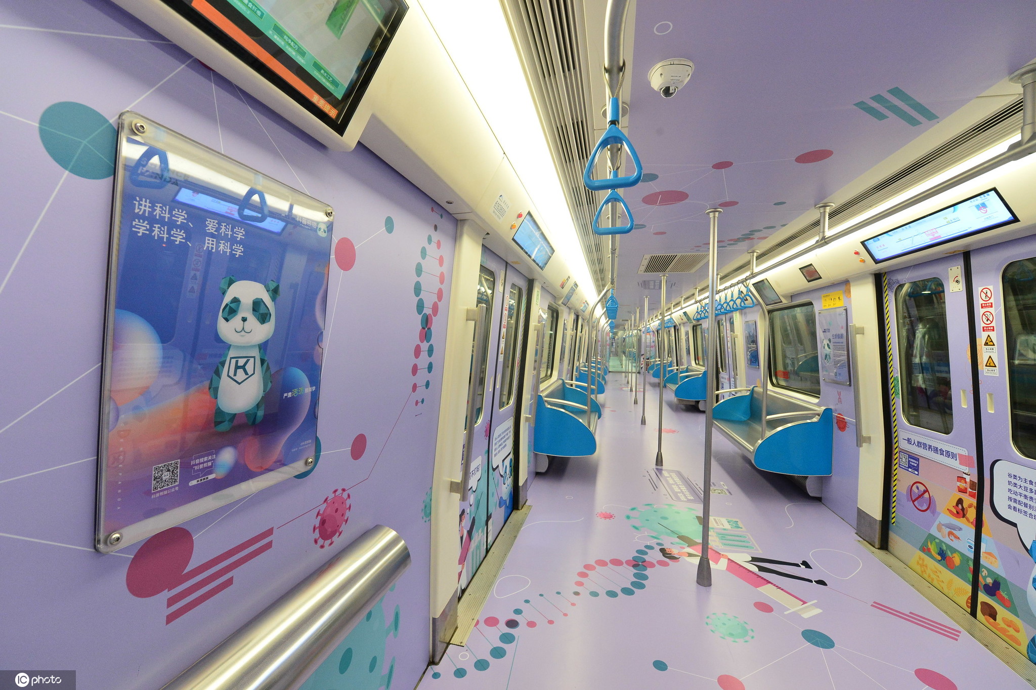 成都地铁“科普熊猫号”列车上线 卡通车厢内贴满科普知识
