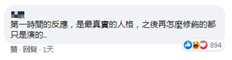 还有网友称,“第一时间的反应,是最真实的人格,之后再怎么修饰的都只是演的。”