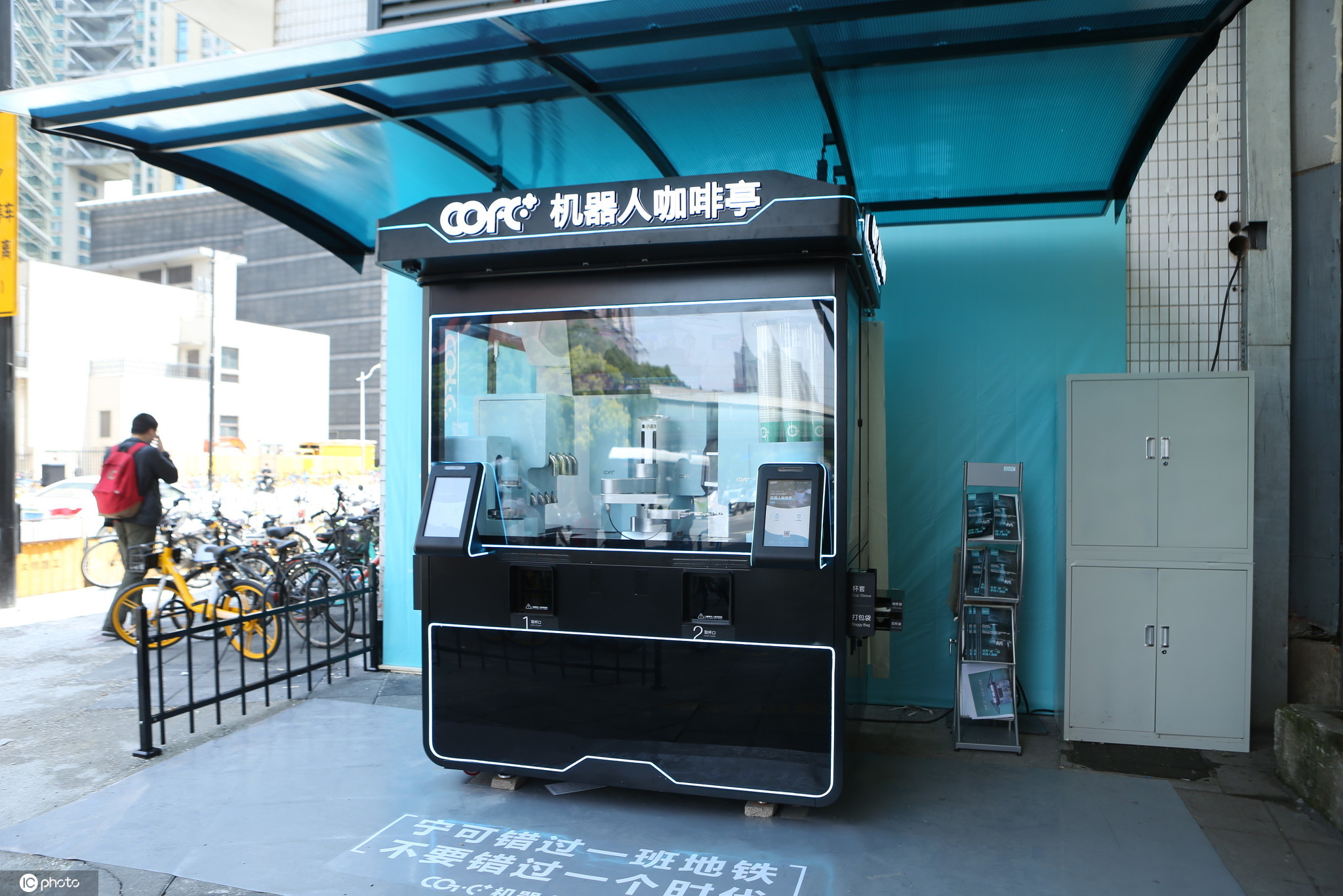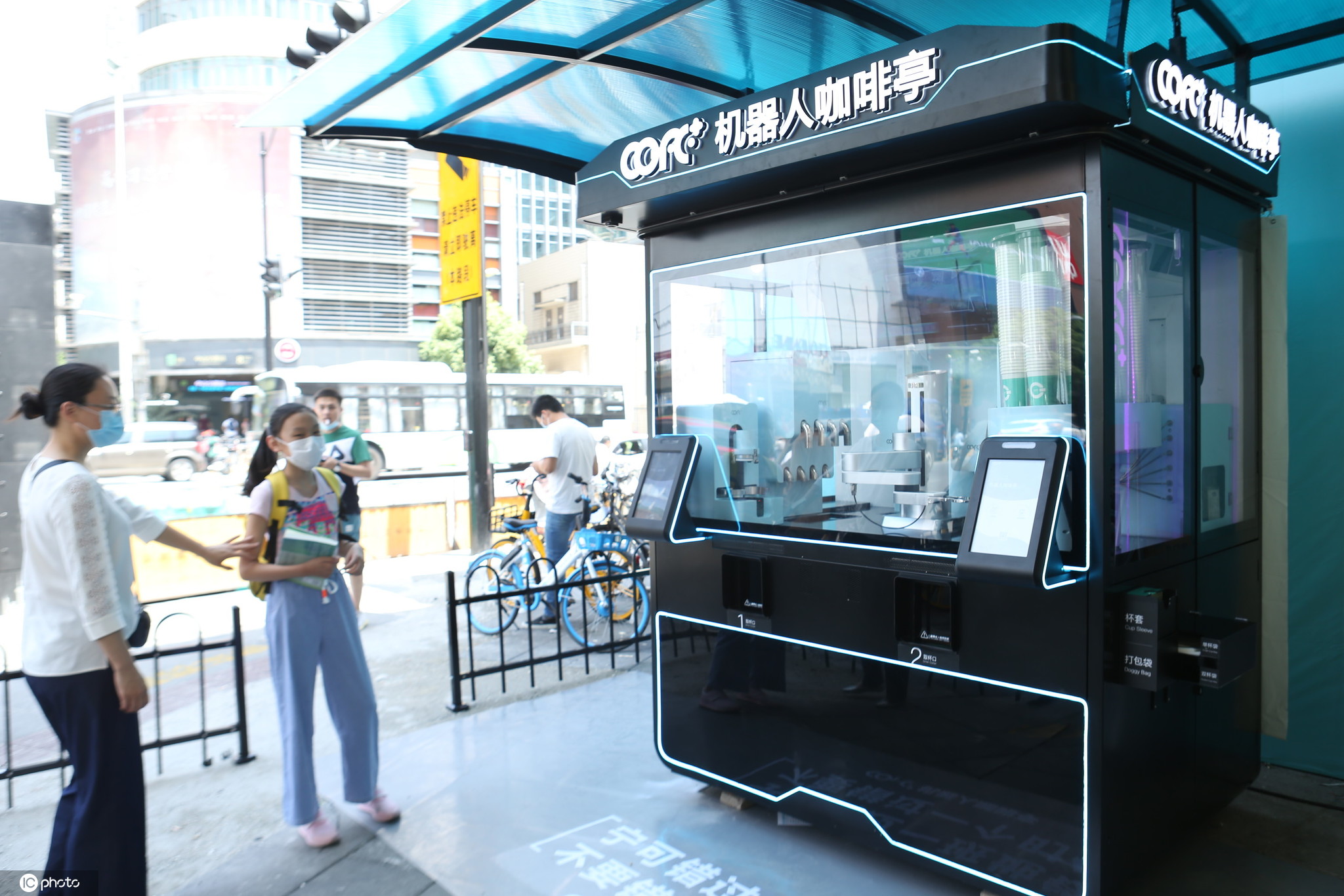 上海闹市区现“机器人”咖啡亭 制作一杯拿铁只需要1分钟