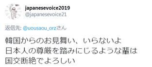“我们不需要来自韩国的问候!那些把日本人尊严踩在脚底下的人,断绝邦交算了!”