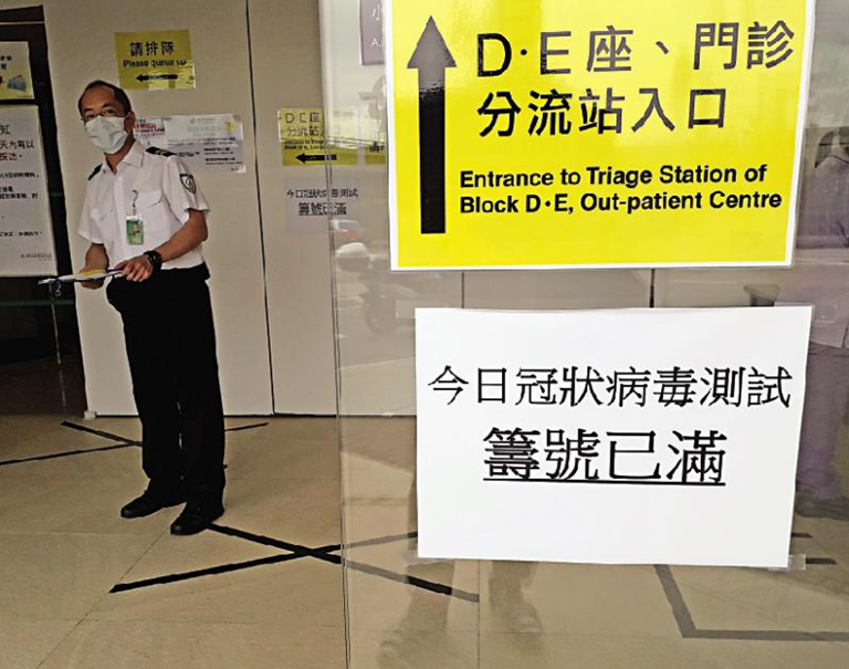报道提及,目前香港不少医疗机构检测名额已额满,而仁安、港怡、嘉诺撒及养和医院则要求病人先预约,才能安排做病毒检测服务。即使有医院声称检测无限额,但抵达医院后却要等待最少五个多小时。有市民表示,昨日(20日)预约,被告知最快要到27日才可以做检测。