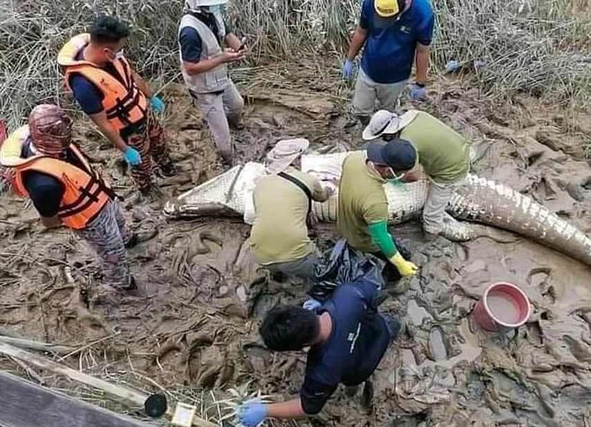 4米长鳄鱼吃掉马来西亚14岁男孩 警方剖开鳄鱼肚子找到遗骸