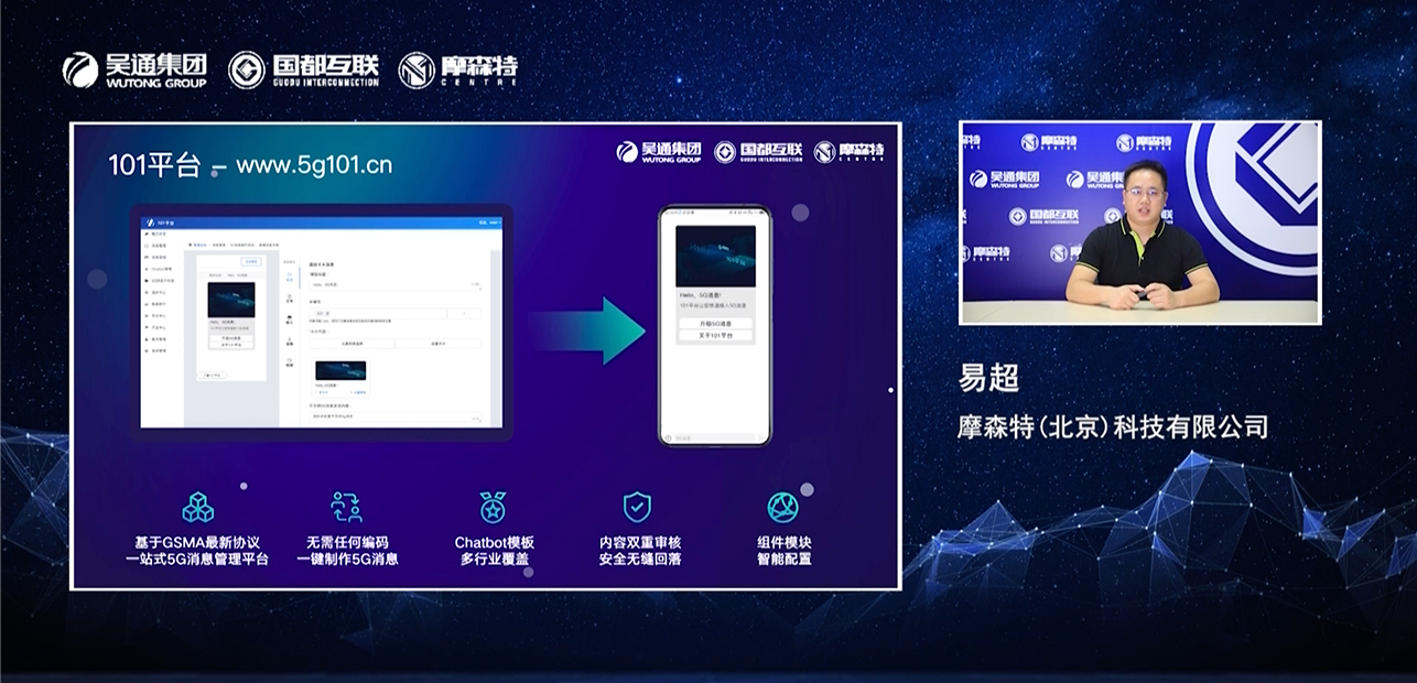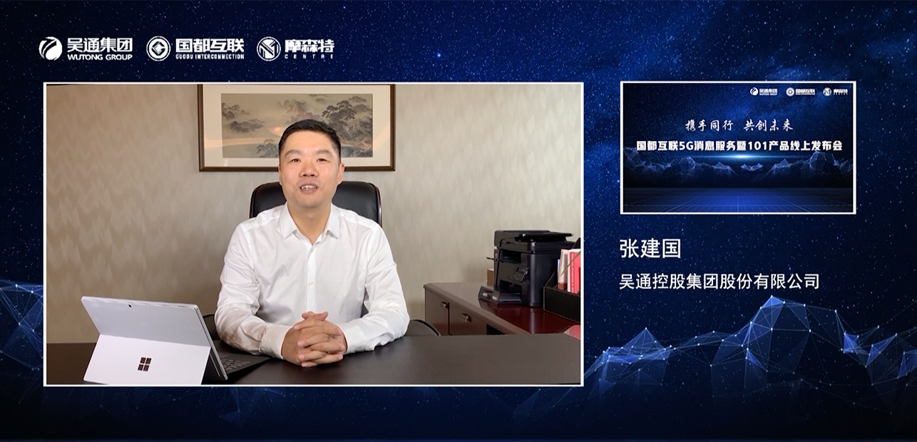 2020年8月24日,吴通控股集团旗下成员企业国都互联及摩森特联合举办了“携手同行,共创未来”5G消息服务暨101产品线上发布会,国都互联5G 101产品正式发布。