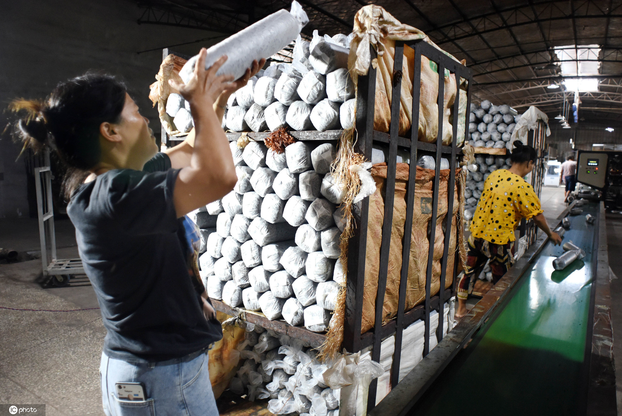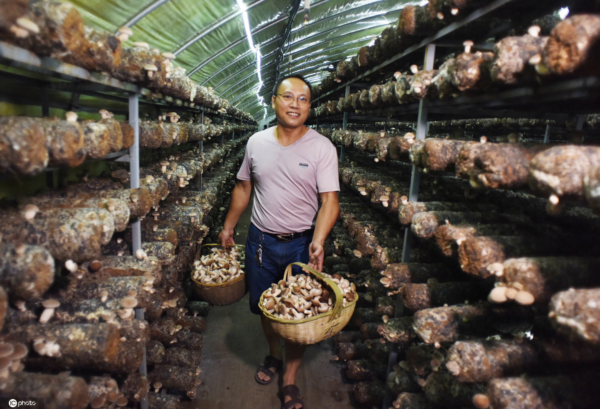2020年9月3日,菇农在浙江省金华市武义县创新食用菌公司光伏农业科技园大棚内采收鲜香菇。 在推广清洁能源中,浙江省金华市武义县与大族农业科技园合作,在壶山街道上端头村创新食用菌公司百亩农业大棚顶上建装机5100千瓦的光伏电站。同时在大棚下面栽培香菇,并请省农科院专家指导探索香菇四季栽培新技术,有效促进科技与产业的深度对接。菌光互补光伏电站不但每年向国家电网输送近500万千瓦时清洁能源,香菇新技术栽培也有了新的突破,创出了亩产鲜菇100多吨、亩收入超100万元的双百科技项目,成了当地科技推广农民增收致富的示范园。图片来源:东方IC