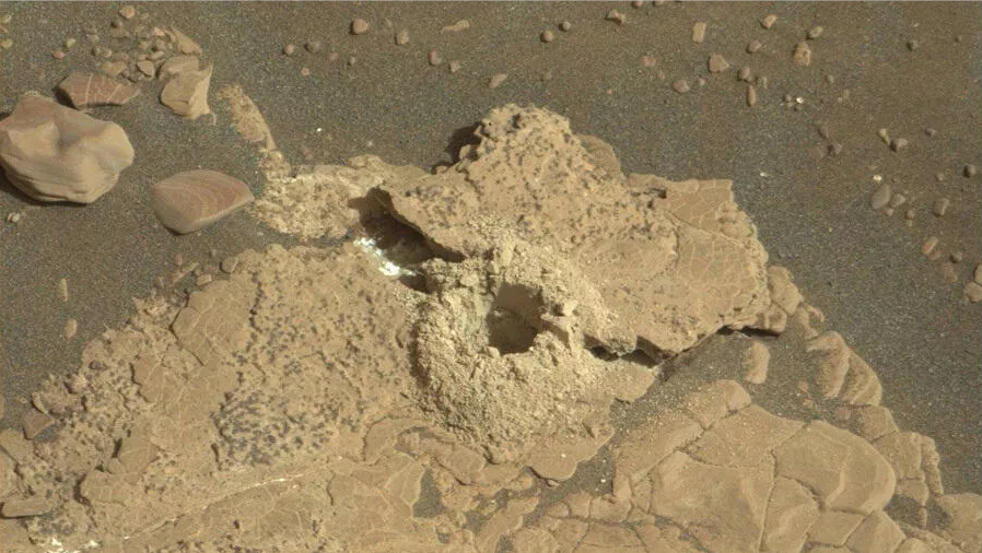 NASA好奇号留下最新活动迹象:钻探过程中意外造成的岩石裂缝