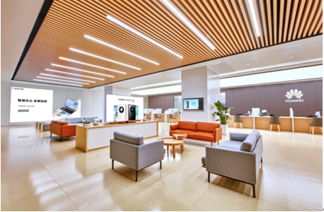 走进服务中心,可以看出整体空间被划分为维修服务区和休闲体验区两个部分。维修服务区坐席整齐、设备齐全,智能机器人助手穿梭其中,在金属格栅装饰和巨幕灯膜映衬下,满满的未来科技风,一台台华为智能设备在这里被专业的华为工程师“治愈”着。休闲体验区则通过暖色沙发、原木色茶几电视柜、高端华为智慧屏的组合布置,营造出舒适惬意的居家氛围。当热情的服务人员贴心送上一份品质餐点、现磨咖啡时,会让人恍惚以为躺在自家客厅。未来科技和人文关怀在这里相互交融,相得益彰。