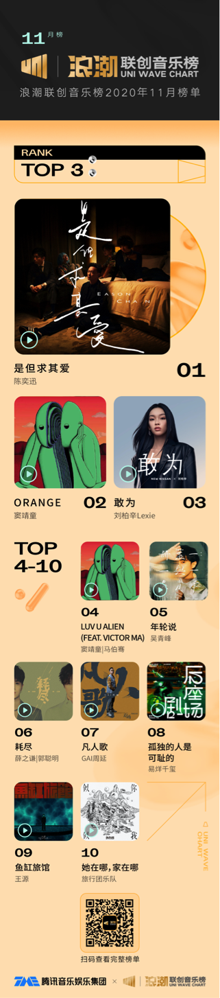 12月22日,腾讯音乐娱乐集团(以下简称“腾讯音乐”)推出月度专业评审型榜单——浪潮联创音乐榜。