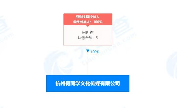 【环球网综合报道】天眼查App显示,近日,杭州何同学文化传媒有限公司成立,注册资本5万人民币,法定代表人为何世杰,经营范围包括广播电视节目制作经营、电子出版物制作、音像制品制作、演出经纪、网络文化经营、电影发行等,由何世杰持股100%。