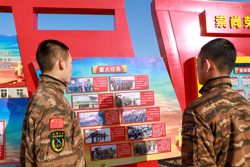“跟我来!看我的!”,训练场上特战队员们龙争虎斗,营区内文化墙展览也如火如荼地进行。特战中队文化墙促进中队官兵与特战文化融为一体,在继承中发展,在发展中传承,让“辽西地区反恐处突尖刀”的特战文化品牌永续发光,接续发力。(作者:杜洋 张晨)