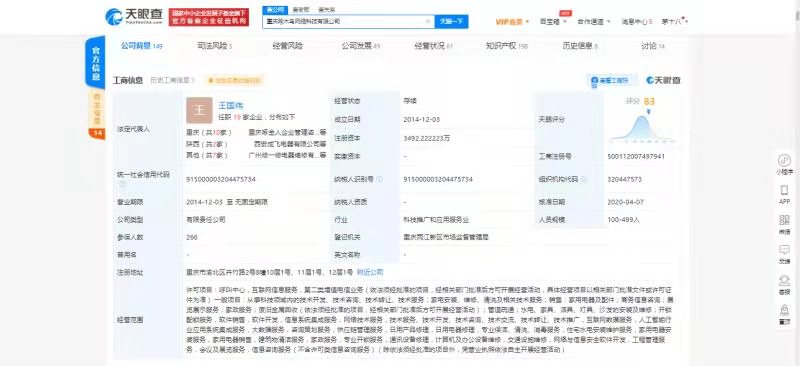 天眼查App显示,重庆啄木鸟网络科技有限公司成立于2014年12月,注册资本3492.22万人民币,法定代表人为王国伟。经营范围包括日用产品修理,日用电器修理,专业保洁、清洗、消毒服务,住宅水电安装维护服务,家用电器安装服务,家用电器销售,建筑物清洁服务,家政服务,专业开锁服务等。