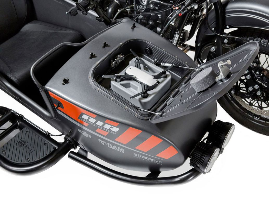 报道还提到,这并非摩托车第一次与无人机结合在一起。2018年乌拉尔(Ural)就曾研制出一款内置大疆Spark四旋翼无人机的挎斗摩托车。这个设想是用无人机作为侦察机来查看骑手视线外的情况。与本田不同的是,乌拉尔展出的是一台完成了的机器,但其无人机并不是全自动的、而是需要人来操纵。