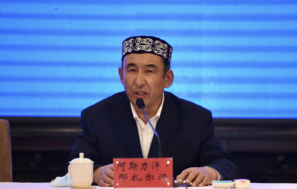 阿斯力汗·那扎尔汗:我叫阿斯力汗·那扎尔汗,哈萨克族,今年56岁,担任阿勒泰市红墩镇清真寺伊玛目已经25年了。从我所看到的、听到的情况看,新疆根本不存在“限制宗教活动”的问题。