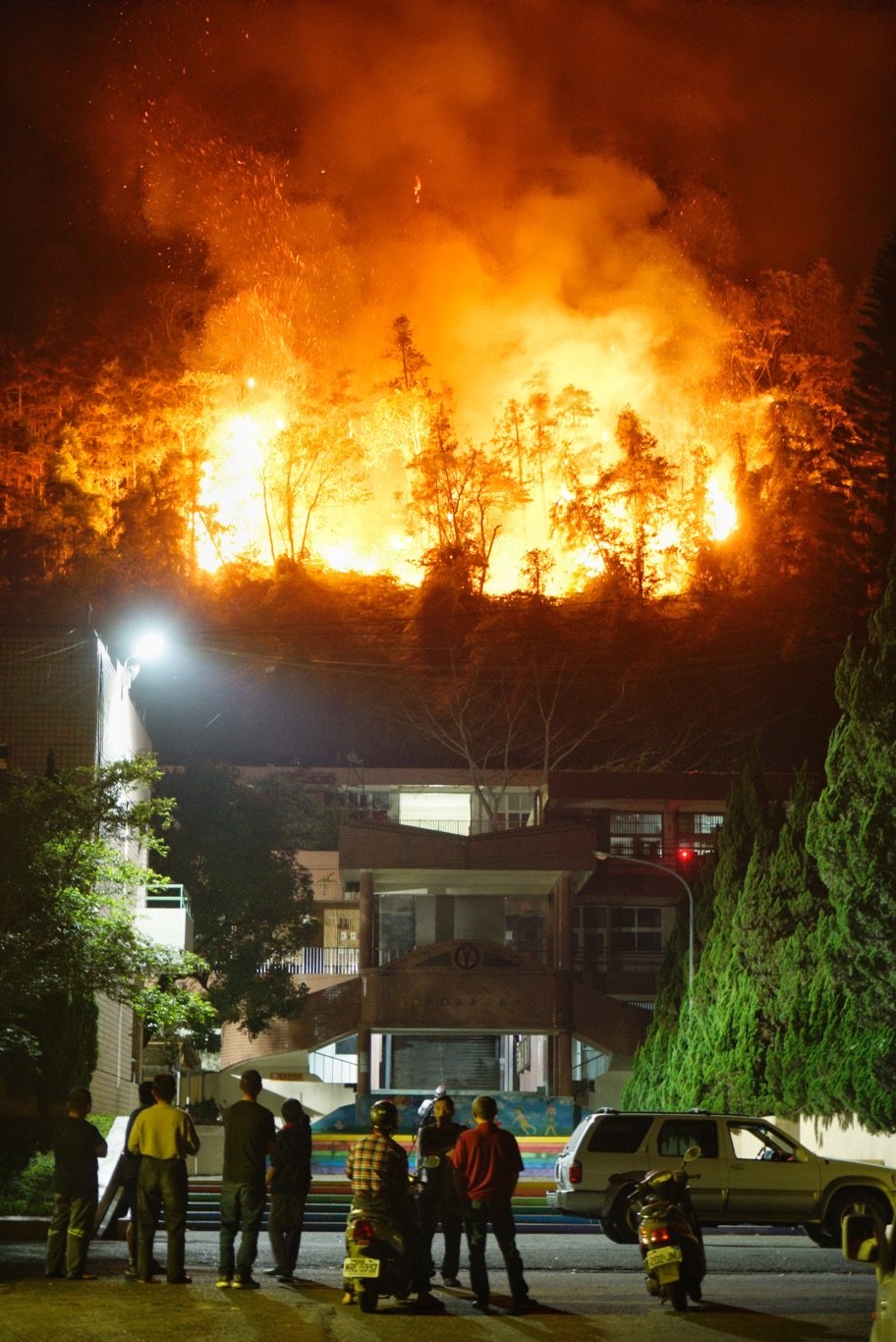 据报道,鱼池国中位于火场正下方不足百米处,大火从山上往下烧危及鱼池国中安全。目前,南投县消防局已经出动,在鱼池国中顶楼警戒。南投县消防局表示,鱼池山火面积约两公顷,因为已经入夜无法派空勤总队直升机前来灭火。现场图片显示火势猛烈,大片夜空被映红。