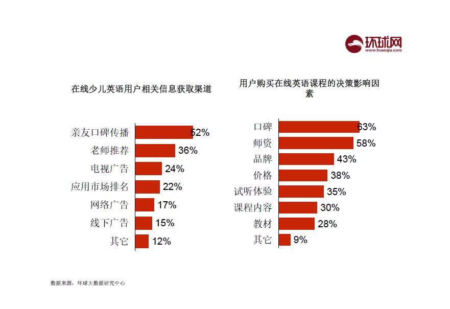 在如今的互联网时代,大家获取信息的渠道非常丰富,有手机、电视、网络、报刊杂志等,但是在在线少儿英语领域则有些不同。调研数据显示,52%的用户获取在线英语课程相关信息的主要渠道是通过亲友口碑传播,同时口碑也是用户购买决策的主要影响因素。