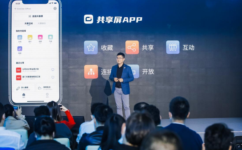 “分享”这一理念,一直是共享屏产品设计的核心。从私屏到公屏,从小屏到大屏,共享屏将各大屏幕串联在一起,实现手机、电脑和大屏之间的的高效协同。