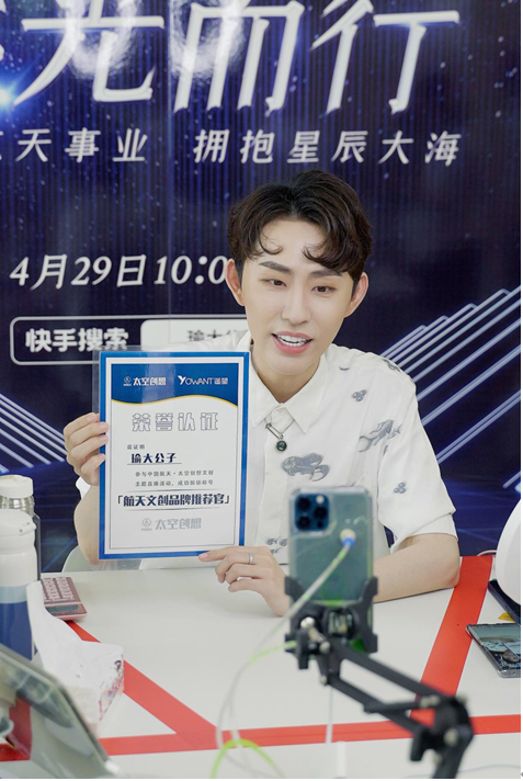 这次直播瑜大公子除了带货人外,还多了一个新身份——“航天文创品牌推荐官”。瑜大公子2019年开播的时候,还只是一个平平无奇的美妆主播,如今已经累积了2000w+的粉丝。