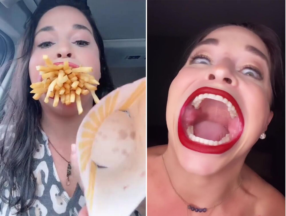 美国一女子声称拥有世界上最大的嘴 能将整包薯条塞嘴里