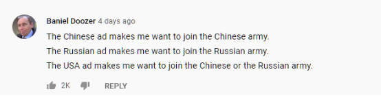 美国征兵广告让我想加入中国或俄罗斯的军队来源:环球网/南希希