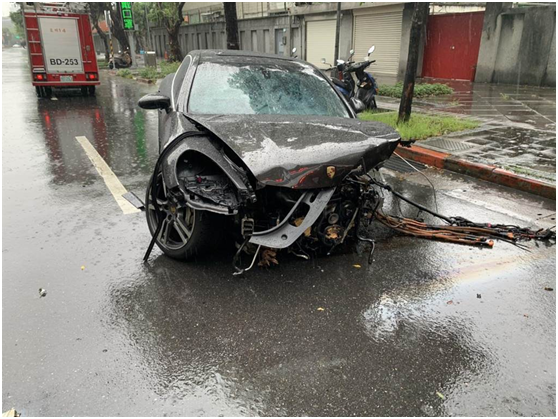 突发!保时捷在蔡英文官邸旁失控撞断路灯,车头全毁