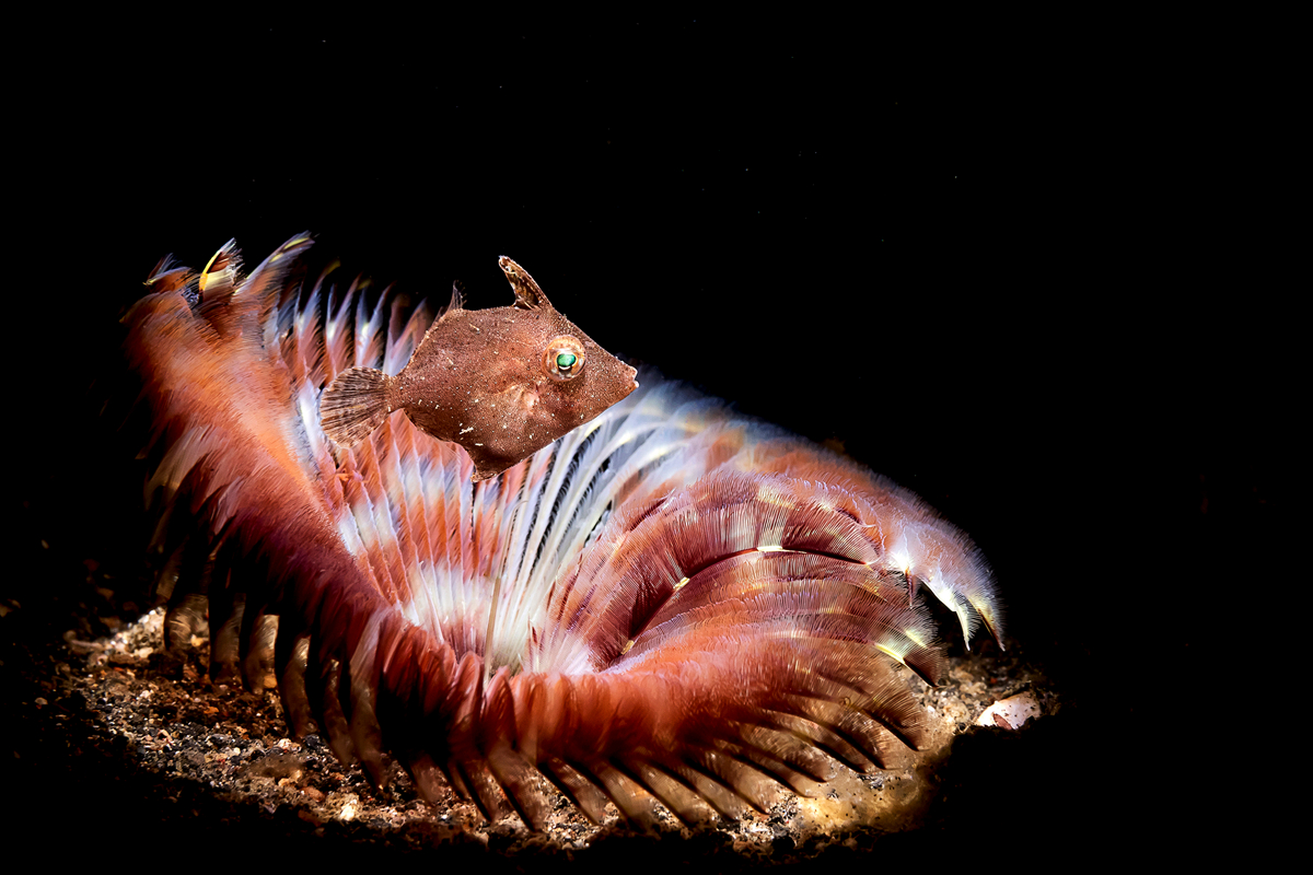 2018年5月2日报道(具体拍摄时间不详),摄影师Ace Wus探秘深海,拍下了一组惊艳的海洋生物照片。在这组图片中,有恍若外星生物的透明章鱼,颜色粉嫩的海蛞蝓,密密麻麻的笛鲷大军,在蓝色海水中悠然遨游的海龟,其中,还有一条浑身是毛的条纹躄鱼一脸挑衅的望向镜头,一片片锋利的牙齿外露,甚是吓人。Ace表示,有限的语言无法表述海洋生物多种多样的美丽,因此他选择了最能直接展示它们独特美感的照片。