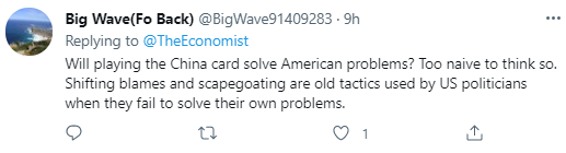 “打中国牌能解决美国的问题吗?这么想就太天真了。指责他人和(寻找)替罪羊都是美国政客的老把戏了,当他们难以解决自身问题的时候。”
