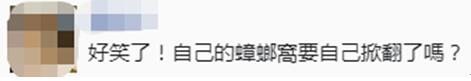 有网友在台媒评论区留言讽刺,“‘政府’买不到足够疫苗还不准人批评!”“好笑了!自己的蟑螂窝要自己掀翻了吗?”