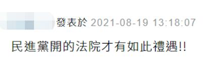 还有网友讽刺,“民进党开的法院才有如此礼遇!”↓