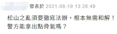 也有网友不满双方就此和解,“松山之乱须要彻底法办,根本无需和解!警方能拿出点骨气吗?”↓