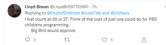 有网友评论说:“我在数到26或27架时就数不清了。想想看,只要其中一架(舰载机)的成本,就足够(制作)PBS儿童节目了。‘大鸟’会同意的。”